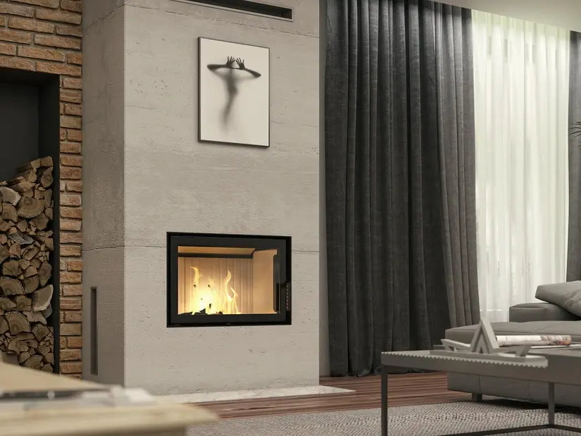 Zabudowany powietrzny wkład kominkowy pozwala ogrzać powietrze, które następnie dzięki grawitacji lub specjalnym systemom nadmuchowym jest rozprowadzane po domu.
