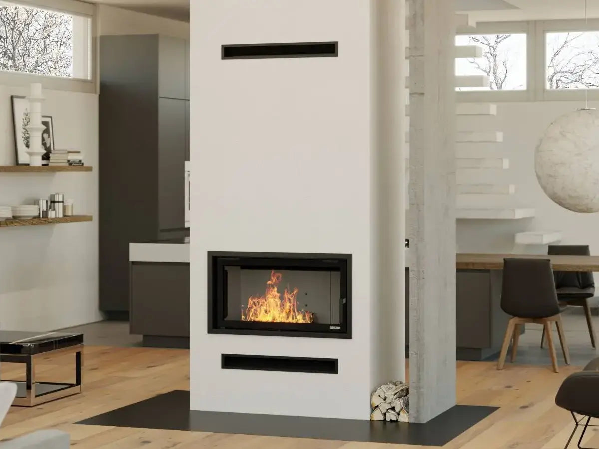 Zabudowany powietrzny wkład kominkowy pozwala ogrzać powietrze, które następnie dzięki grawitacji lub specjalnym systemom nadmuchowym jest rozprowadzane po domu.