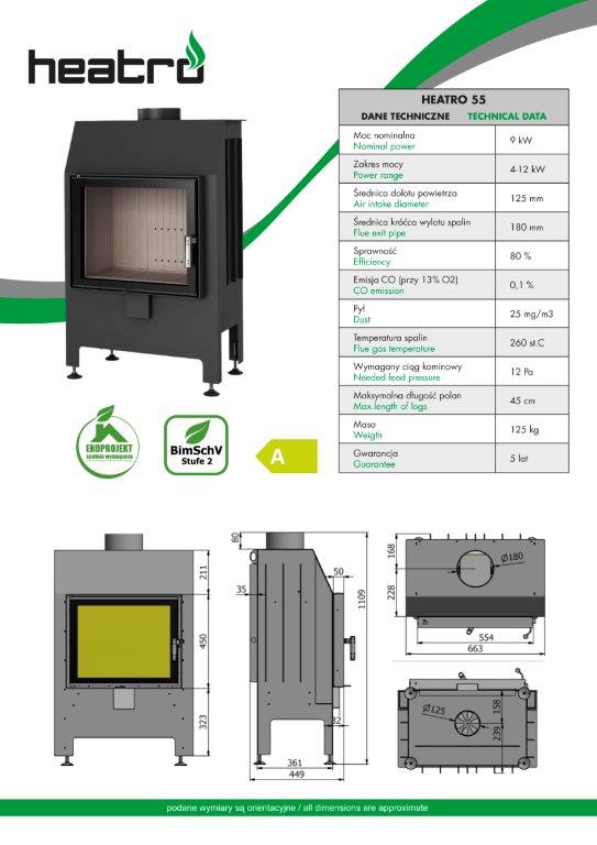 • wylot spalin fi-180 mm – kompatybilny z większością kominów