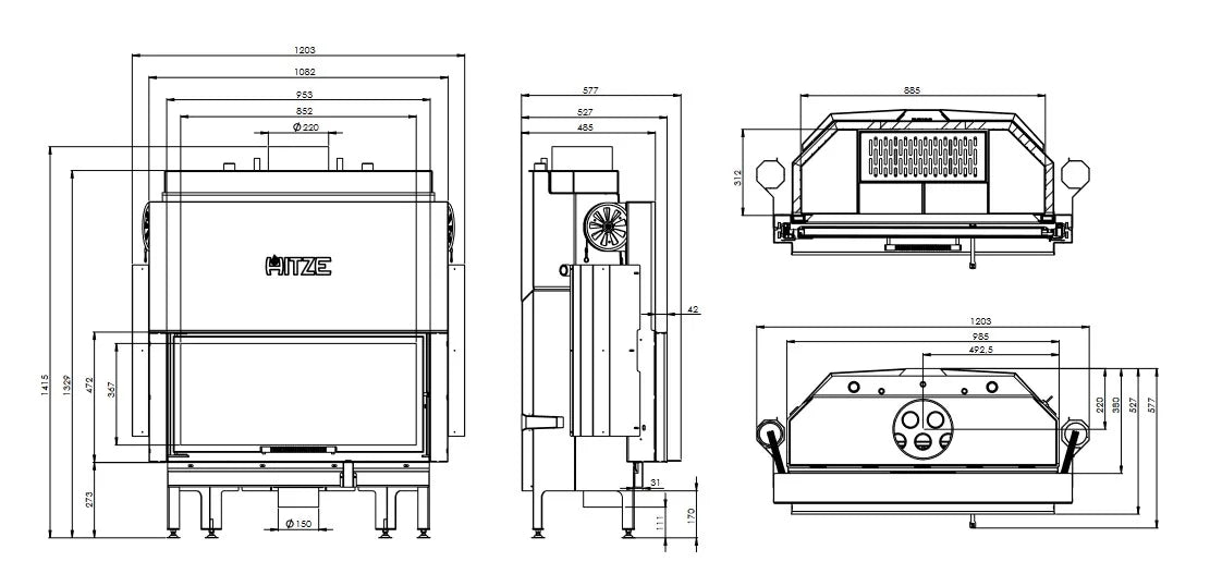| Wymiary szyby w kominku (mm) | 900×410 |