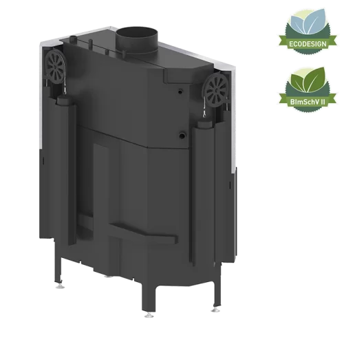 - System dopalania spalin oraz umieszczenie płaszcza wodnego nad paleniskiem przekłada się na wyjątkowo wysoką sprawność wkładów.